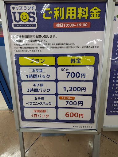 Read more先日に利用させて頂きました。 以前にも利用したことがあるのですが、子供を放置して話し込む親御さん&マッサージ機を占領して寝ている父親、買い物に出て子供一人で遊ばせている親などほぼ8割が疑問を抱く客層。 スタッフも見回りなどはなく、利用客も好き放題にテーブルを占拠し無法地帯でした。 今回、久しぶりに利用したところ、テーブル占拠していた親御さんは減少しており、子供を見守る親御さんが増えていました。中の様子は週末利用しましたが、利用客が減少しており、以前に来た時のような混雑はなかったです(減少の理由に口コミにも多く見られますが民度の低さが関係しているのかなと思いました) というのも受付時の店内ルールで、お客同士のトラブルや子供の怪我など店側は一切関与しないので了承下さいといった内容のものが書いてあったので、 順番待ちしないお子さんやおもちゃを占領するお子さんなど店内ルール守れていない人達への注意はしてくれないんだろうなと、 無法地帯になる理由が分かったといいますか...ちなみに料金は休日1日フリーだと1500円の保護者代金600円です。 子供の数が増えると高いかな...