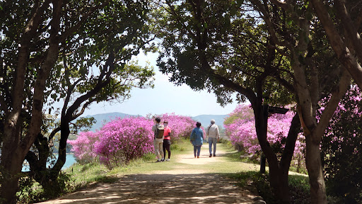 2022.04.16(土曜日) 今日は好天に恵まれ、先日テレビで見ごろも「今週限りか?」と伝えられていた、岡山県瀬戸内市牛窓町の瀬戸内海を見渡す小高い丘にある牛窓神社のつつじを拝見にやってきました。初めての参拝とお花見でもあり、車両のナビに導かれ山を上がり駐車場に着いたのですが、流石にテレビで報じられた事も手伝ってか、道路脇の駐車可能な場所も含め20台位の大小様々な大きさの車輛がびっしり。私は15分位その場に留まり、戻って来られ車で発たれる人を待ってやっと駐車。その間にも多くの方が車で訪れてはいたもの、駐車スペースが無いと知るやUターンやバックで道を下って行かれる様子も…。後で分かったのですが、牛窓海水浴場の方からも階段で上がって行く牛窓神社の参道があって、その脇に牛窓観光協会さんが管理されている、トイレのある大きな駐車場が整備されている様です。やはりしっかりと調べて行かないといけないものですね。さて、肝心の”つつじ”ですが、駐車場から続く森の中の小道を抜けると厳かな牛窓神社の本殿と社務所が。そこから石段の参道を下って行くと、牛窓海水浴場に隣接する”本来お詣りする際に利用すべき参道の鳥居のところに至るのですが、その参道の丁度中程に瀬戸内海に向かって開けた”蕪崎園地展望台”(かぶらさきと読むのでしょうか?)が有って、その展望台に今を盛りと艶やかなピンク色の花を満面に咲かせたつつじが辺り一面咲き誇っていて、青い空、その空を映したような青く輝く瀬戸内の穏やかな海。そしてそこに浮かんで見える深緑の島々や多くの岬。その風景と相まって何とも例え様の無い景色を生み出していて、老弱男女、多く方がカメラ片手にその景色を愛で楽しんでおられました。このつつじ、展望台に自生していた”コバノミツバツツジ”の種を牛窓神社の宮司さんが長年手入れをして300株程にに増やしたらしく、この時期になると市内外から多くの人が見物に訪れる様になったとか。人や車が多かったのも納得ができる見事な景観でした。勿論つつじのお花見だけでは無く、しっかりと社殿にてお詣りもさせて頂きましたよ。そうそう、タレントの出川哲朗さんと小島瑠璃子さん、多分電動バイクの旅かな?最近参拝さている様です。社務所に写真が飾られていました。是非皆さんもご参拝がてら、瀬戸内の風情や景観を愛でに来てみては如何でしょうか、きっと穏やかなひと時を過ごす事...