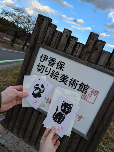 ここだけでしか見られない作品ばかりです。 お土産屋さんにある切り絵のはがきの作者の方とは無関係です。 切り絵の鑑賞の仕方だけでなく、切り絵の奥深さを知ることができました。思ってもなかった感動がそこにあります。 体験は短い時間でできますので、大人でも充分楽しめます。 展示されている作品の多くが購入できますので(しかも高くて20万もいきません!)、次にはもう見ることのできない作品ばかりの、動きのある美術館です。毎年来ても飽きないと思います。
