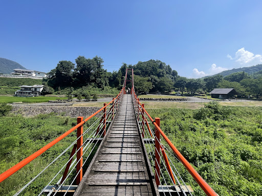 敷地内、立派な赤い吊り橋を渡った沼尾川の左岸側にカスリーン台風(昭和22年)の自然災害伝承碑あり。