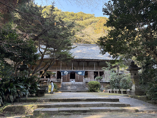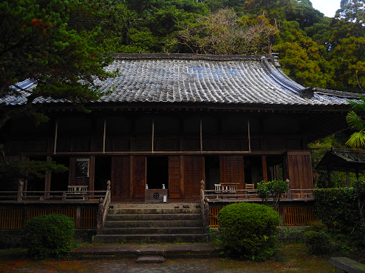 通りに面した石の門のところで仁王像が迎えてくれます、仁王像を過ぎて左手には庭園があります。 本堂の右手にも小さな庭があります。 訪れたときは紅梅が咲いてました。 市役所の志布志支所の駐車場が利用できて、徒歩で3分ほどです。 (2019/01/23)
