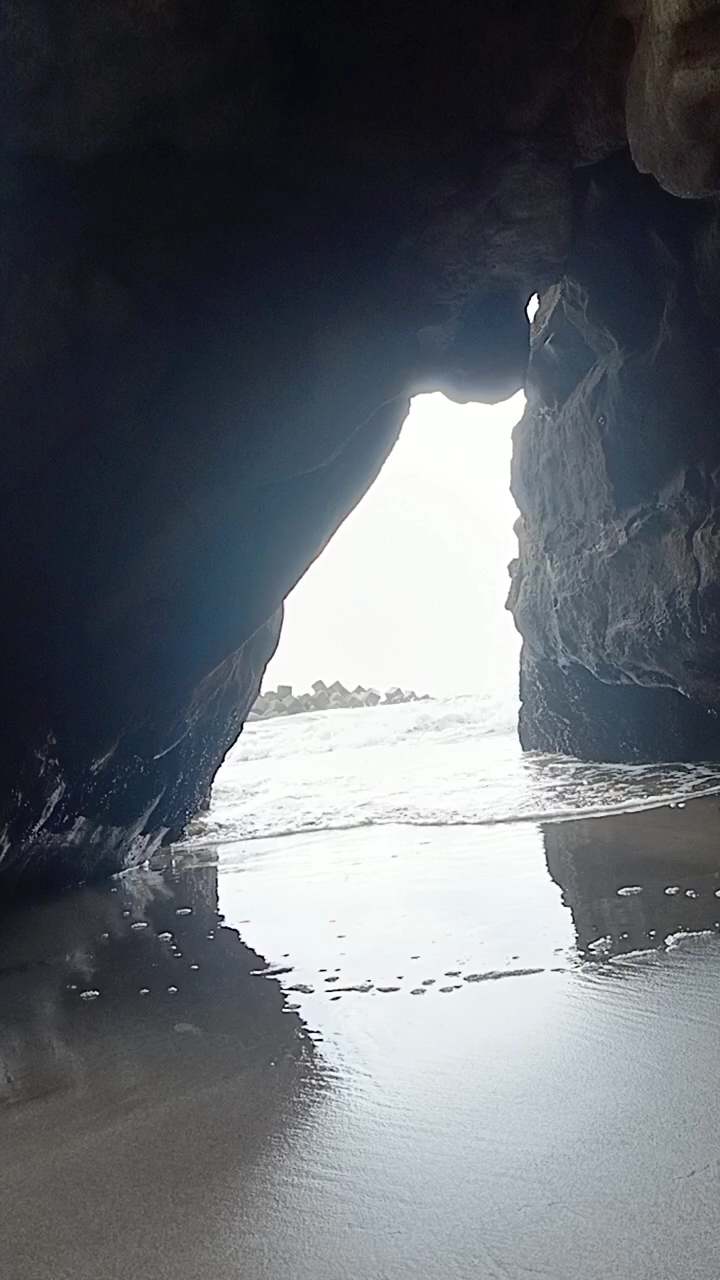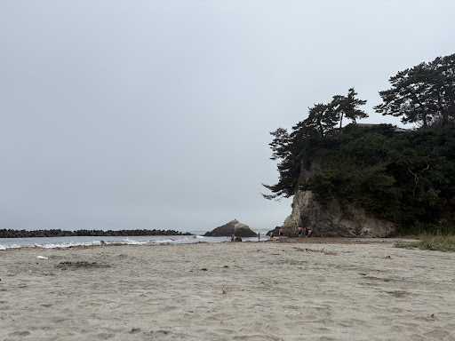 まずはここ「外人浜」。 その謂れも定かではない中、本来はブルーバックを期待していたものだから、青空の浜を想像することでカバー。 訪問者は自身のみということでにわかプライベートビーチ感を満喫する。 浜はたいそう綺麗で砂の粒子はきめ細かい。 遠目にサーファー達が集う浜をうかがうことができるが、この浜の波は比較的穏やかでなかなかの穴場スポット。