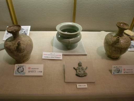 昔、このあたりは海岸線だったようで、大陸からこの地に馬が運ばれてきて、この地で飼育され、大和朝廷などに献上されていたと考えられています。 そのため、馬の土器などが多数出土しているようで、中にはまったくキズがついていない馬の土器も出土し、それが展示されています(人気展示物なので、秋の季節にはよく遠征するようです)。