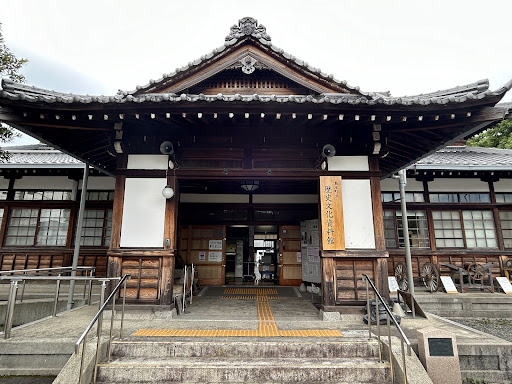 島本駅前に建つ古い木造の建物。ここはもともと麗天館と呼ばれていた記念館で、昭和16年(1941年)の建築です。その後は、JR島本駅開業までここにあった大阪府立青年の家の講堂として使われていました。 現在は島本町の歴史文化資料館となり、様々な資料が展示紹介されています。