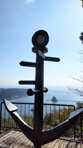 Located just a few minutes’ walk from the Shimoda Ropeway Summit Station, this observation deck delivers another beautiful angle of Shimoda Bay, with a few unique details to distinguish it from the other nearby viewpoints. In truth, the view doesn’t change drastically between the multiple lookout points on Mount Nesugata, but even so, each location adds its own subtle texture. At the Kurofune Observatory, that texture includes a dramatic replica anchor, bolted to the platform, which functions as both a directional marker and a solid photo backdrop. It’s a thoughtful detail: inscribed around it are names and compass directions to global landmarks like New York City, Tokyo Skytree, Mount Fuji, Taipei, and the Maokong Gondola—a quirky touch that ties local scenery into a more international narrative.
