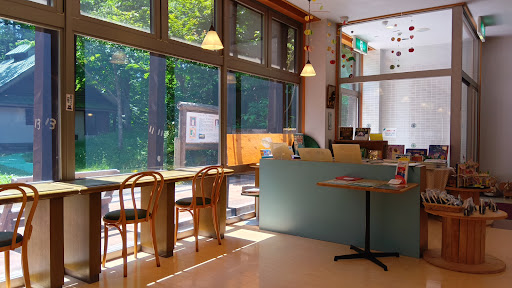 ◆喫茶の「時間どろぼう」(モモですね)はいわさきちひろの山荘を見つつアイスクリーム,フレーバーティー、軽食が頂けます。お茶は紙コップでの提供でした。絵本(閲覧可能)と絵画に囲まれながら気取らないティータイムが過ごせます。 アイスクリームはジェラート工房 春色さんのものでした。ルバーブのパウンドケーキも美味しそうでした。 高級な食器でしずしずとティータイム。ではありません。