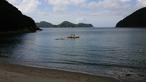 Read more以前は横崎海水浴場と言っていましたが、船崎郷に買収され改名されました。以後、港が建設され中央に防波堤が出来たため、海流が変化し砂が移動して今の砂浜になりました。中央部の砂浜は砂が無くなって船崎側に溜まっています。防波堤を建設するまではエイの産卵場でしたが今は無くなりました。全体的に砂を採取されて浅い砂場は少なくなっています。8月20日を過ぎる頃から3mを超えるサメが防波堤の外側までやってきます。海水浴はお盆...