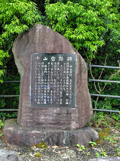 公園へは、新東名高速道路脇に造られた212段の階段を登ると行けます。物見櫓風の展望台と中山砦跡碑があるだけの小さな公園でした。