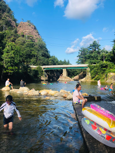 super deep river under the bridge, nice for diving in. make sure you know where to dive in first. be carefull because the bottom of the river were not level, and sudden change of depth might not suitable for people that cannot swim. nice for day camp, bbq, and kids area at the side of the river. make sure you carry back all your rubbish as no trashbin available and no overnight camping. parking : 1000yen for...