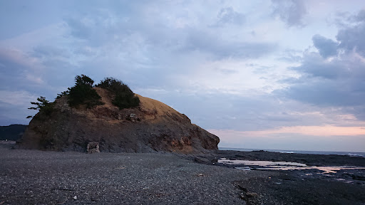 道の駅から海岸を南東へ歩くと、小さな岩がぽこんと出ており、角度によっては熊が鼻から上を出して海原を眺めているように見えます。 訪問時は夕暮れだったので、アクセスも景色もわかりにくいので、当たり前ですが昼間の訪問をおすすめします。