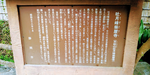 宗祇亡き後、連歌界の指導者となった地元出身の「宗長」が55歳で草庵を結んだ場所だそうです。正式には「天柱山吐月峰柴屋寺」と言いますが、天柱山とは「柱」のように急角度で屹立する寺の裏山の事で、今もその特徴的な姿を西に望む事が出来ます(写真参照)。