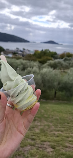 早速風車へ行こうとすると、みなさんの手には箒が。オリーブ記念館にて貸し出しをして下さっているとの事で向かってみると何本かまだあったのでそれを持って向かいました。タイミングでちょうど箒が出払ってしまっていることもあるかと思いますが、写真を撮り終えた方々が必ず返しに来るので、もしなくても少し待てば箒は手に入りますのでご安心を。 オリーブ畑を抜けて、いざ、風車へ。