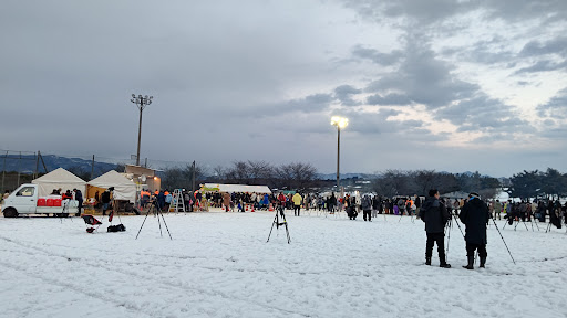 Read more花火を観る為2回目の運動公園です。車🚙も沢山駐車出来るので助かってます。いつも花火を打ち上げてくれて出店もあり暖炉も準備されて本当にありがたい事です。綺麗な花火が観る事が出来良かったです。今回は、こないだの大雪で雪と足元がぬかってましたが無事イベントが出来て最高の時間をあり...