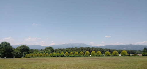Read more毎年夏の初めに訪れます。木陰に車を停めてチェアリング。モフモフの植木が並ぶ向こうに山並みが連なり絶景😃 まだ蕾が緑色で目立ちませんが、モフモフの足下にはアジサイのアナベルが植えられているので花房が白く膨らむとそれはまた見事な景色です。 下界は31度の気温でも、ここでは木陰の風が涼やかです。 ローラー滑り台や、エアドーム等、子供達が遊べる公園もあ...