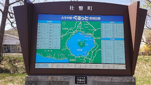 Read more壮瞥町から洞爺湖温泉に向かう、道々2号線洞爺湖登別線沿いにあり所在地は壮瞥温泉だ。洞爺湖8景の一つだ。さらに近隣にモーターボート乗り場では、足こぎのスワンボートも乗れる。園地には駐車場🅿️🚗もあり、トイレ🚻も設置されている。さらにベンチや、芝生の広いスペースもある。その湖畔が公園である。統一された案内標識(看板)で示されている。写真撮影の際には活用できるので後程の回顧に有難い案内標識だ。 この場所からは洞爺湖が一望でき、洞爺8景の看板越しに、弁天島と中島の間には真っ白な羊蹄山も見えた。左手に視野を広げるど、ウインザーホテル洞爺の建っている山は幌萌山、弁天島、羊蹄山である。さらに右手側には、、オロフレ山も見える。 やはりこの8景看板のある位置は、記念撮影場所とし...