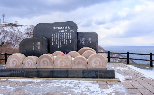 I flew to Tokyo, then took the shinkansen to Aomori, then drove another 2 hours to visit the Monument of the Popular Song "Tsugaru Kaikyou Fuyugeshiki" at Cape Tappi.