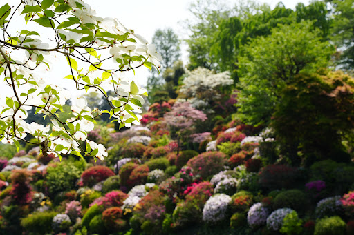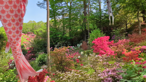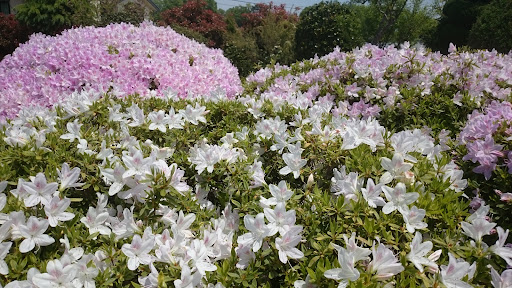 山の斜面をそのまま生かして、50000株を超えるつつじが植えてある。そのため、どこでも撮影スポットになる。ゆえに、時間に余裕を持ったほうが良い。歩道は急斜面な所もあるので、膝、足腰に不安がある人は、母屋から眺めるのがオススメ。木々の間にチップが敷かれていて、柔らかく感じる。雑草等もきれいに抜かれているところに、1年を通じて細やかな手入れがされているのを感じた。その労力たるや!! シャクナゲ(石楠花)が3mほどの高木で、色鮮やかだったのも印象的でした。訪れる際は、てっぺんのシャクナゲエリアまで行かれるのをオススメします。 シャクヤク(芍薬)がまだまだ蕾だったので、開花した頃また伺いたいです!!!