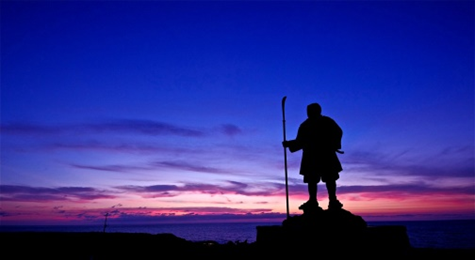 📖想望 同志を待ちわびる弁慶の心、ここに宿る。奥州を逃れた義経・弁慶一行は蝦夷地に渡り、この地に滞在していた。弁慶の舎弟ともいうべき常陸坊海尊が、義経再挙の兵を募って蝦夷へ向かったという情報を得た弁慶は、毎日毎日、この岬の先端に立って海尊の到着を待っていたが、海尊軍団の船影を見ることはできなかった。そんな弁慶の姿を見ていたアイヌたちは、この岬のことを、弁慶が同志を待ちわびていた岬ということから、いつしか弁慶岬と呼ぶようになった