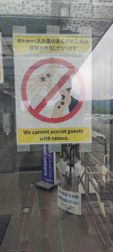 We came as a couple on foot to enjoy the onsen for my birthday, but we were unpleasantly surprised to see this sign at the entrance to the building and at the reception desk, which was a bit xenophobic (obviously it wasn't written on their website). Decorative tattoos of any kind are prohibited, and this is the ONLY information sign written in English in the entire building.