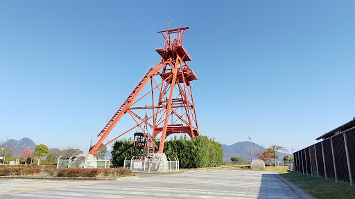 三井田川鉱業所伊田坑の跡地であり、およそ100年前に建設された立坑櫓、および煙突と用品の数々がほぼ当時のまま(櫓は登ると危険なので整備階段の低い部分だけは切断)保存されている。