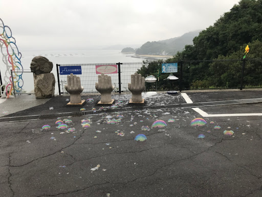 入口がラブホ風の門なので躊躇するかもしれませんがその先には絶景の駐車場があります。 駐車場にシャボン玉コーナーがあり、大人だけなのにひたすら遊んでしまいました。