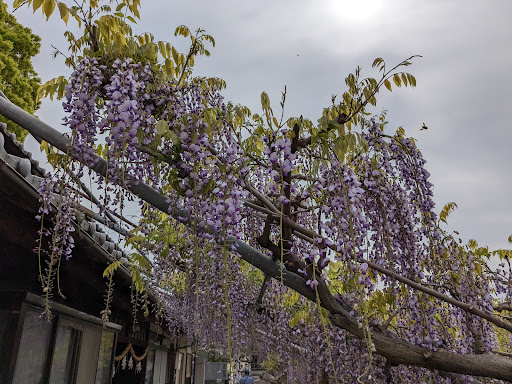 Read more桜が終われば藤。GW頃まで見頃だと思います。 毎年、岩田神社の周辺に藤まつりののぼり旗が多数建てられ、それを見る度にそう思ってます。 私が、小学生の時以来ですから30年以上ぶりに立ち寄りました。圧倒される程の迫力はありませんが、こじんまり咲き誇っているのが懐かしくもあり、可愛げでした。 鳥居の前に長い参道がありますが、昔私が子供の頃は、秋祭りには両端に出店や屋台やテキ屋が、ズラッと並んで境内の中まで入り混んでいて、相当賑わっていました。本当に懐かしいです。 最近は、漫画の鬼滅の刃の大ヒット効果もありますし、大勢の人に立ち寄って欲...