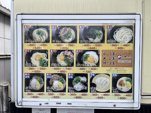 まずは、外か店内の壁に貼られてあるメニューを見て①「〜うどん」の②「小 大...