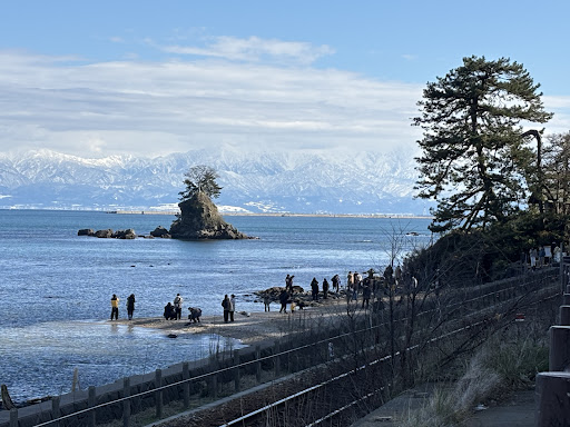 Visiting Onnaiwa, also known as Amaharashi Rock or Meiwa Rock, was an unforgettable experience. This charming islet, topped with trees, emerges majestically from the sea, creating a picturesque scene against the backdrop of the snowy Tateyama mountains. The view is simply breathtaking, especially at sunrise when the rock is perfectly aligned with the rising sun.