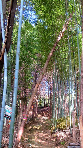 長尾登山口までは民家の間を少し通り抜けて高御位山の山頂まで50分の案内板があり畑の裏側にある竹林が入り口になります。
