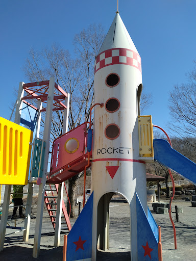 ロケットモチーフの滑り台が特徴的でした。 コマ型の回転遊具は最近見かけないレアな遊具です。 広場も併設&芝の小山もあり走り回って遊べそう。 バトミントンやボールを持って音連れ対公園です。 「裸足で遊べる広場」というコンセプト...