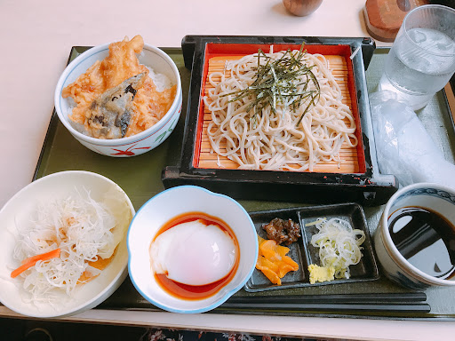 結構大きめな建物で、駐車場もたくさんあります。店内は向かい合うタイプのカウンター席、テーブル席、座敷があります。店員さんは忙しいからかみんな笑顔はありません。声の掛け合いは出来てるようですが…。混んでいる割に頼むと結構すぐに持ってきてくれます。水は各テーブルにセルフで置いてあります。 休日しか行ったことがないですが、大体11時20分頃〜12時は満席の可能性大です。ランチに食べたい人は11時過ぎには着くことをお勧めします。 地元の人が多いようです。 わたしはイカミニ天丼とざる蕎麦のセットを頼みました。天丼は甘いタレが天ぷらに合っていて、イカの天ぷらも柔らかくておいしいです。ご飯は意外とあるので女性は残してしまうかもしれません。イカミニ天丼・ざる蕎麦・サラダ・温泉卵・漬物2種類・薬味・つゆがついています。 蕎麦は時々硬めなことがありますが、今回は美味しかったです。 メニューは豊富で、地元民曰く新しいメニューが増えたと言っていました(笑)お蕎麦屋さんですが、うどんも選べるのはありがたいことですね。冷やし系や温かい系、辛い系などまだまだ食べたことないメニューがたくさんある...