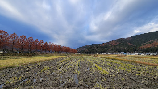 12月初旬、メタセコイヤの「並木」の方を見に行った時に、自転車で立ち寄りました。 右には山々の紅葉、左には知内川という清流が流れ、大変綺麗な光景でした。 空は、ものすごく青いし、鳶が伸び伸びと飛び、川沿いにはタンポポが咲き、モンキチョウがひらひらと舞い(この日は気温17度でした)、別世界です。 ポスターや、カレンダーの写真にあるような、日本の里山の原風景といった感じです。 「並木」の方は、道路沿いにあるのに対し、こちらは歩道沿いにあるので、静かで人混みも無く、私はこちらのメタセコイヤの方が好きです。 マキノには美しい場所が沢...