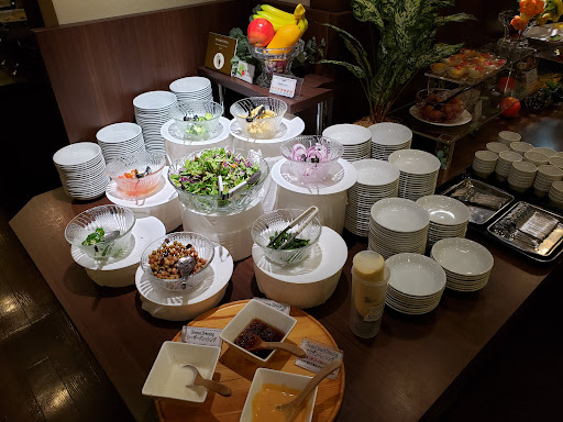 A nice complimentary buffet breakfast. A very nice spread with a wide variety of western and Japanese breakfast items. We entered at 8:30, we're able to get up and restock from the buffet, and we were able let us stay past 9am to finish up. No, they did not throw us out, nor tell us we couldn't go back for more food. I was also able to get by fine with English and a little broken Japanese.