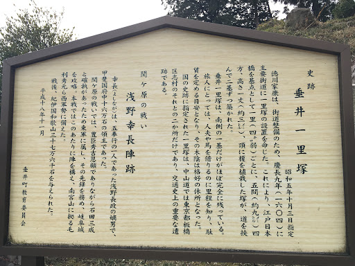 国の史跡に指定された一里塚は、中山道では東京都板橋区志村とこちらのみで貴重な遺跡 とのこと