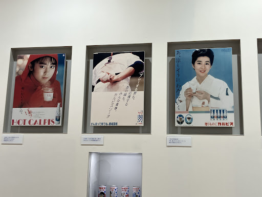 まず、見学ツアーの冒頭でカルピスの誕生ストーリーを描いた短編アニメを鑑賞します。子どもにもわかりやすく優しい雰囲気で、三兄弟も静かに見入っていました🎞️ アニメのあとは展示コーナーへ進み、歴代パッケージや広告ポスター、昔の製品ボトルなども見られて、大人も懐かしく楽しめました。