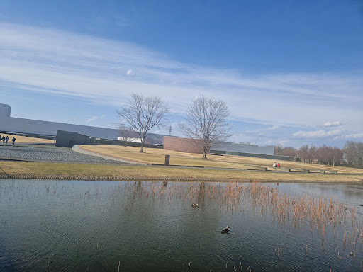 The approach to the Museum begins with the parking lot, across the bridge over the scenery pond, and along the curved cascade. The lawn in front of the Museum is slightly sloped to lead the visitors’ eyes and movement within the horizontal landscape.