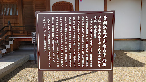 Read more尾曳稲荷神社から車で1キロ。 池のほとりにある善長寺に参拝しました。 とても綺麗で整備されたお寺だなと思っていましたら、数年前に建て替えをしたとの事でした。 門から参道、本殿、庭園等もすべてが新しく、少し驚きました。
