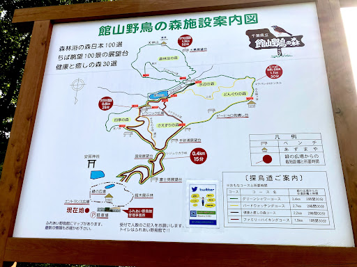 This is a bird sanctuary next to Awa Shrine. There is a natural history museum and activity hall above the parking lot. Coffee and ( in summer ) ice cream inside. Coffee is self service 100 yen. Corona may have affected availability. Between the building and the trail up the mountain is an open grassy area ideal for picnics, active children, dogs who like to retrieve balls and frisbees, and so on. Ducks and their ducklings quack and sometimes venture outside their fenced in pond at the foot of the hill. A peacock spreads it's feathers and screaches. Frogs add their bullhorns...