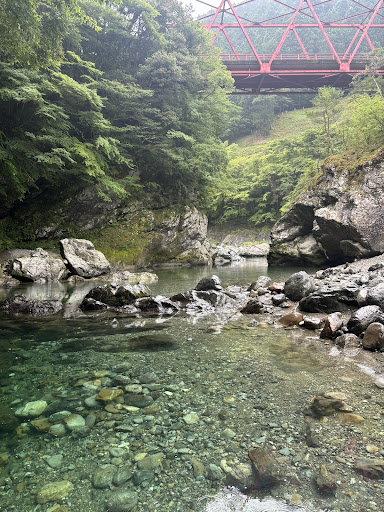 みたらいの滝というか、みたらいの滝界隈の川で遊びました。 川なので、プールのような安全な状況ではないですが、岩の組まれ方が天然のスライダーになっていたり、流れがあまりないプールのような深いところもあったりして、子どもたちは、「ここでこんなふうに遊べる!」と遊び方を発見しながら楽しそうに遊んでいました。 メインの遊び場には高さ5m以上の飛び込み場があり、中高生くらいの人たちがエキサイティングに飛び込んでいました。小学校高学年くらいのお兄ちゃんも浮き輪をはめながら飛び込んでました。これは楽しそうでした。 駐車場は、1時間500円、終日1000円で停めることができます。全部で15台ほどの場所がありました。料金は近くのお店に払います。 マイナスポイントとしては、みたらい渓谷直前の2キロ程の道がめちゃくちゃ細いです。対向車が来たら恐怖を感じるくらいの細さで、「対向車来るな〜!」とつぶやきながら運転してました😂交わすスペースもポツポツし...