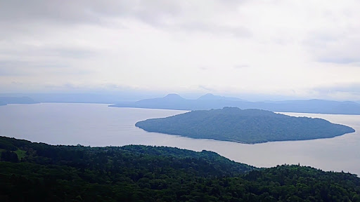 美幌峠から見下ろす屈斜路湖 屈斜路湖は日本最大のカルデラ湖らしい 美幌峠はその陥没した火山の外縁部ってことになる こんなに巨大なカルデラ噴火があったなんてね… 3万年前の地球には住みたくないものです でも… その頃にはもう人類は存在していたわけで よく命を繋いできたものだなぁと北海道を旅していても至るところで感じます