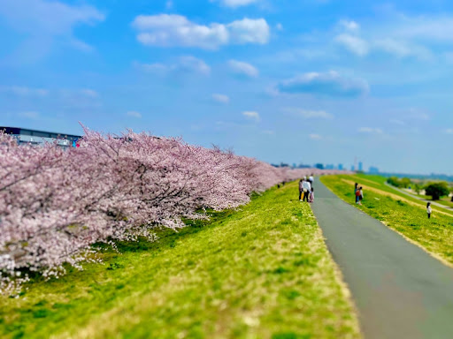 Read moreこの季節になると道路沿いに植えてある桜の木を鑑賞するために沢山の花見客が訪れます。 今年もすごく綺麗ですが、去年の一面桜吹雪の光景が美しすぎて… 贅沢な話かもしれませんがまだ吹雪いていない今の段階では物足りなさを感じます。 僕はこの辺りの土手をほぼ毎日ジョギングしているのですが街中で走るのと比較して空が広く感じることができ、良いストレス解消になります。 花見シーズンでなくても、晴れの日であれば緑の芝生と、側を流れる川、真上に広がる大空を感じることのできるここいらの場所は心身をリフレッシュさせるのに最適です。 付近にはボート部のフレッシュな学生さん等もいて、若いエネルギーを感じることもできます。 魅力溢れる場所ですが、個人的なイチオシは土手の上で見上げる空の広さですね。 ゴミゴミした街中では建物が邪魔して空が狭く見えますし、そもそもそもそも空を見上げる余裕もなかったりします。 ここに来れば余計なものがありません。 「空が広い」というのは土手の上であればどこでも同じことが言えますが、「自然の美しさには敵わない」とは正にこのことだな…と腑に落ちること間違いないでしょう。 是非天気の良い日に訪れ...