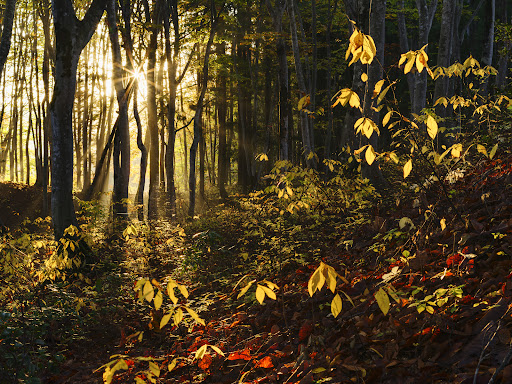 冬季には3~4mの積雪となります。雪の重み木の形「桜曲がり」が形成されます。 ブナの葉は緑色から黄色、茶色へと変化し落 の登作年には、...