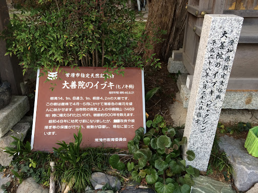 Read more真言宗補陀落山大善寺。白鳳年間開基と伝わる。知多四国八十八ヶ所霊場、知多西国三十三観音霊場。お寺のシンボルとなっている伊吹の大木は樹齢500年で愛知県指定天然記念物。イブキの原種にあたり、学術的にも貴重。冬花庵観音堂は橋本関雪宝塚元別邸を移築したもの。その下の石のアーチはご住職の製作。本堂裏の四国八十八箇所お砂踏みは明治時代に作られた知多では最古のもの。かつては裏山を廻るように設置されていましたが、伊勢湾台風の影響で危なくなったことから...