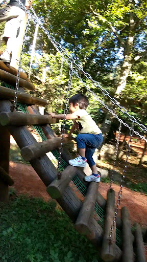 ■都心からこんなに近くで自然に触れられる場所はそうそうない■ 当たり前だけど、森です。でも手入れされていてきれいです。どなたかが危険だと書かれていましたが、子供から目を離さなければ問題ないと私は感じました。小学生に混じって果敢にアスレチックを楽しむ様子が普段は見ない姿で親が感激です。 また、椎茸?が生えている原木があって、ちょうど息子は「キ、キ、キノコ♪」の歌にはまっているので、こんな風にキノコができるんだよ!と説明したり。大人はただ森を歩いているだけでも癒されると思います。