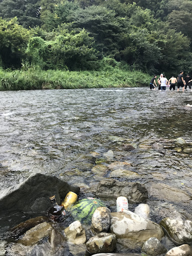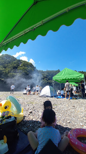 <アクティビティ> ココはとにかく川遊びがオススメ★ 少し上流に行くと鮎釣り?をしているダンナを見かけるくらいなので、とてもキレイな川です!カワエビやオイカワ(魚)など様々な魚を見ました。少し釣り竿をたらせば釣れそうなスポットも、ちょっとした飛び込みに良さそうなスポットも。浅瀬ではボールや水鉄砲で遊んでいる人が多いです。ちょっとした深みでは泳げそうですし、変化に富んだ河原。浮き輪を持っていって浮かべると、天然流れるプールのようでとっても楽しいですよ^^ サンダルは、川で遊んでいると通常のビーサンでは確実に流されます!(漂流サンダルを何個も見ました)クロックスや、バンドのついた固定出来るサンダルを持参しましょう。いずれにしても、安全には十分気をつけて楽しんでくださいね。