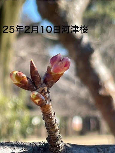 Read more2025年3月17日 大漁桜は満開になりました。その向かいにある河津桜は葉っぱが目立つようになっていました。 2025年3月10日 早咲きの大島桜、大漁桜共に開花が進んでいます。 2025年2月27日 河津桜が1輪だけ咲いていました。大漁桜も蕾の先が色づき始めました。週末に気温が一気に上がる予報なので開花するかもしれません。 2025年2月21日 河津桜の蕾が鳥に突かれたようです。もう少しで咲きそうだったので残念です。 2025年2月17日 河津桜の蕾の先が一段と赤くなってきました。通路の反対側の大漁桜も蕾が大きくなってきました。 2025年2月10日河津桜で1輪だけ今にも咲きそうなつぼみを発見。