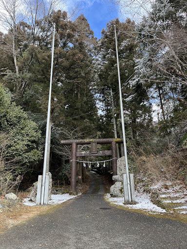 井戸に祀られており、新屋・井戸・黒田の村氏神です。 小伏から黒田に入る道に“一の鳥居“があり、井戸川に沿って参道をのぼると“二の鳥居“があり、山の中腹に“社殿“があります。 その奥に“奥の院“があり、さらにその奥に“もとやしろ”があります。 “もとやしろ”には石祠、石段と屋敷跡が残っています。