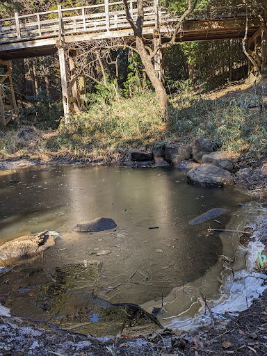 森部分には、木製の橋がかけられていて、ワクワクしながら渡れます。 森も、ふかふかの腐葉土たっぷりで高い木があり、森林浴が出来ますよ!