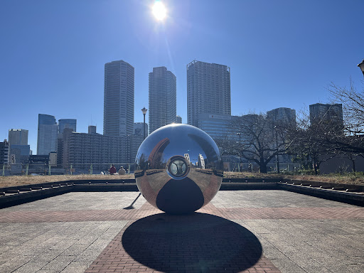 Read moreはとば公園 Hatoba Park on the bank of the Sumida River. A lovely park in an urban forest of tall buildings. The highlight is the punctuated sphere artwork in the center of the park. I am uncertain of the name of the installation but it was very clean and shiny when I visited. A nifty photo opportunity. I especially like the reflected buildings in the...