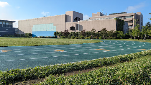 The free 300m athletic rubber track is fantastic. Or you can run around it and the park for exactly 1 km, the distances are written on the asphalt itself. There are also benches and other facilities for free body workouts. A baseball/football pitch.